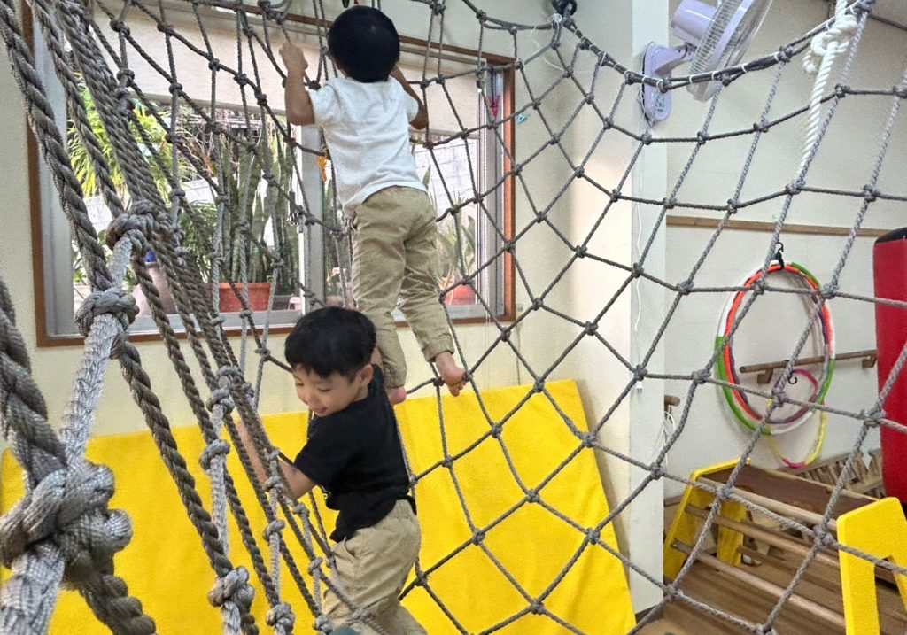 5感+3つの感覚(タッチ・ボディ・バランス感覚)を刺激する遊具を用いて、脳の発育や土台となる体を作るトレーニングを行い、気持ちをコントロールする力を獲得できるよう支援します。 疾患に伴う身体機能に対し、発育に合わせて段階的に個別訓練を実施します。