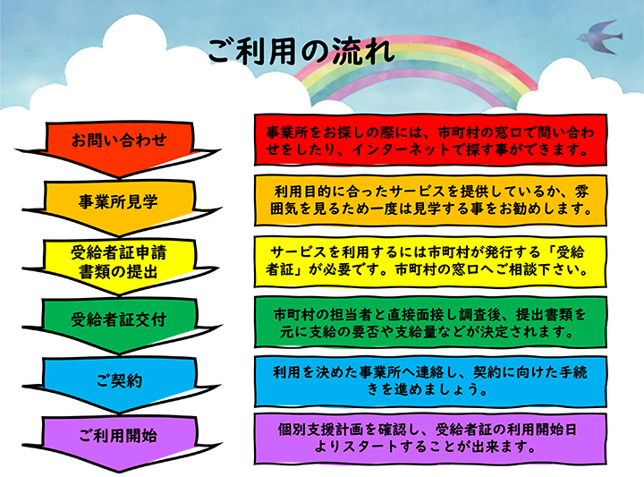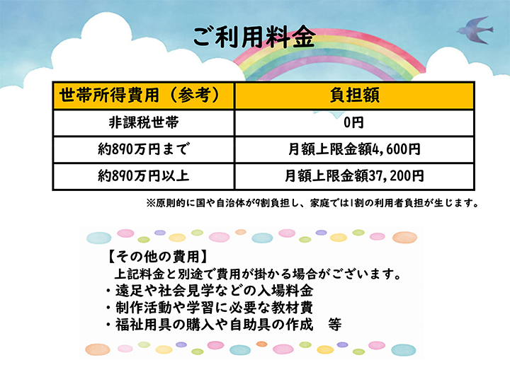 小集団から集団、大人を介した関わりからこども同士、場の共有から遊びの共有など、段階を踏んで集団活動に自分らしく楽しく参加することが出来るよう支援していきます。